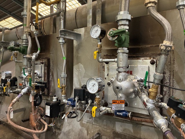 当社ではこのたび、本社工場において稼働中のA重油燃料炉をLPG(液化石油ガス)燃料仕様へ改修する工事を実施しました。燃料システムを更新するとともに、CO2排出量削減・大気汚染防止・エネルギー効率向上を図っています。